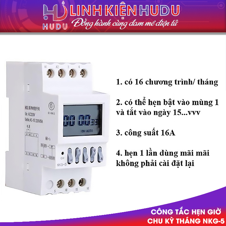 - Linh kiện điện tử Hudu cung cấp bộ hẹn giờ NKG-5 tháng có chất lượng tốt, khách hàng hoàn toàn yên tâm khi sử dụng.